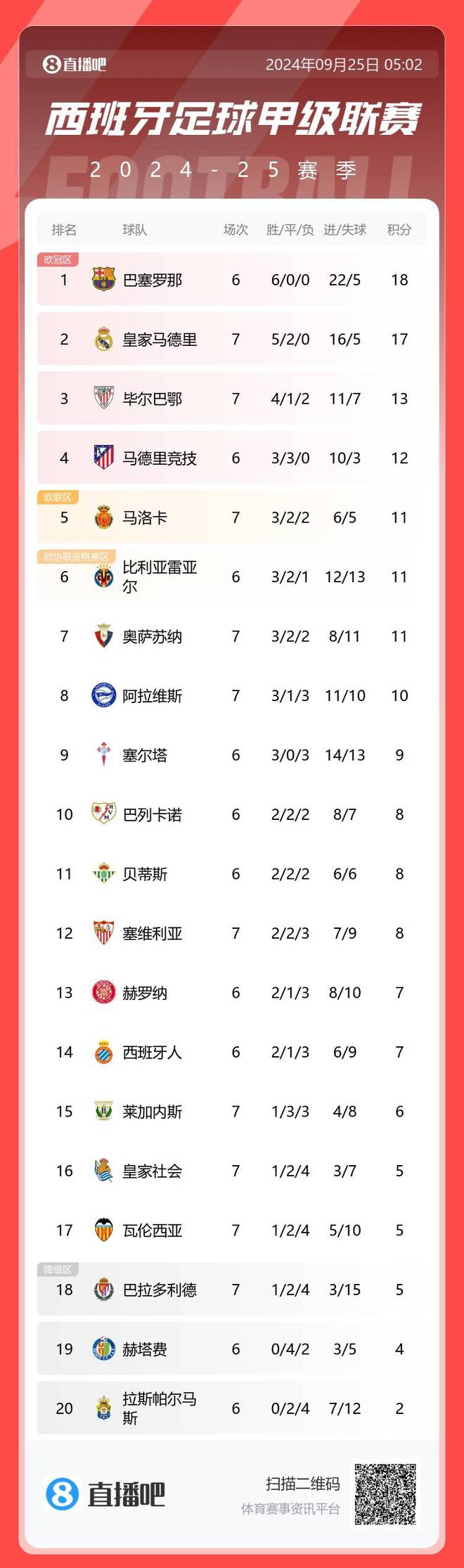 La Liga table: Real Madrid has won four straight in the league, one point behind Barcelona with one game in hand [jiayu]