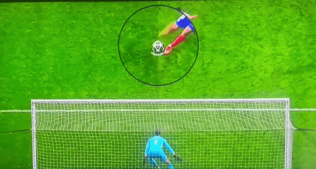 There is also a common situation that the kicker's supporting foot slips and continuously touches the ball with his feet, even if the ball eventually flies into the net, it will be judged as a second touch.