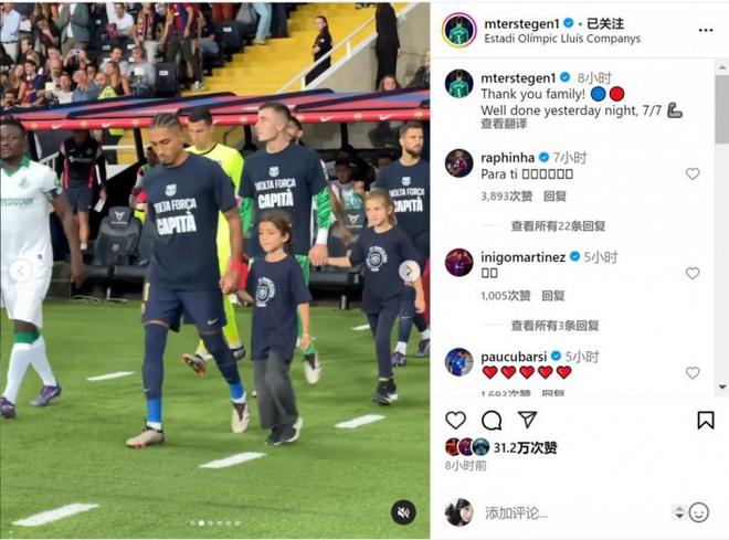The Barca players wore special T-shirts to show their support for the injured goalkeeper Terstegen.